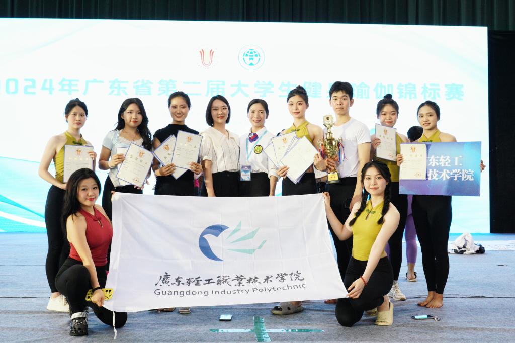 我校健身瑜伽队9名运动员在领队陈绿波主任,教练员郝卉、朱晋源老师带领下,于2024年5月31至6月2日带队参加由广东省教育厅指导,广东省体育艺术联合会主办、广东外语外贸大学承办的2024年广东省第二届大学生健身瑜伽锦标赛。本次比赛由来自中山大学、暨南大学、华南师范大学、广东外语外贸大学、广州体育学院等25所高校代表队共计两百多名运动员参加,我校运动员在此次比赛中获得3金2银2铜的好成绩。其中:曾子锋(建材211)获得男子单人赛第一名、男子段位赛第一名;曾子锋和钟莉讴(检验211)获得混双第一名;冯露露(澳食222)获得女子单人赛第二名;冯露露和郭舒淇(空乘211)获得女子双人赛第二名;冯露露、郭舒淇、黄佳宜(食安222)、黄钰辰(软件222)、叶子珺(光电221)、赖玉环(生化221)获得集体徒手第三名;郭舒淇获得女子段位赛第三名;严佳仪(游戏222)获得女子段位赛第八;我校健身瑜伽队获团体总分获得第三名。郝卉和朱晋源作为指导教师,获得“优秀教练员”称号。(图/文 体育工作部 郝卉)