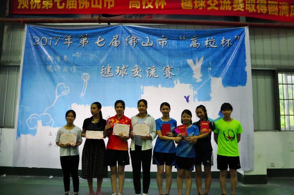 5月21日,由我校主办和广东环境保护工程职业学院协办的第七届佛山市“高校杯”毽球交流赛在环保学院圆满落幕,共有来自佛山6所高校的十六支队伍参加本次比赛,共经过了42场比赛。在指导老师张沛锋老师的带领下,我校毽球队的健儿取得了优异成绩。其中男团代表杨宇轩、王艺、陈永行、梁建海、倪凯鑫同学获得男团第四名;女团代表梁金梅、梁敏贤、许卓妍、欧艳玲、罗琦君同学获得女团第三名;女团代表罗莎莎、陈细秀、倪晓娜、林春娴、李斯琪、卢慧倩同学获得女团第四名。